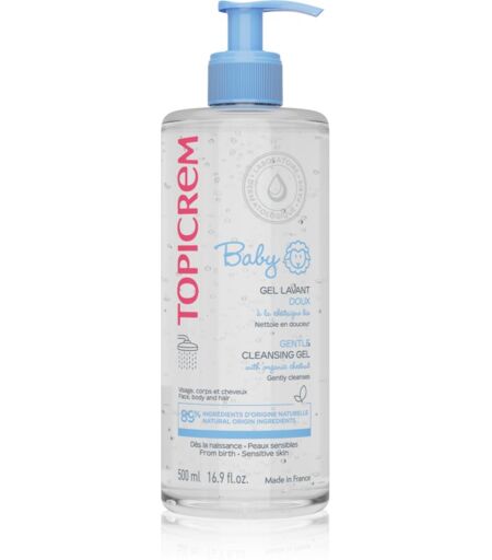 Topicrem BABY My 1st Cleansing Gel 2in1, 500 ml, Gels douche pour enfants pour enfant, La peau des enfants est bien plus sensible et délicate que celle des adultes. Il est donc nécessaire de lui accorder un soin particulier dès le nettoyage. Le produit TopicremBABYMy 1st Cleansing Gel 2in1 laisse la peau fragile de votre bébé parfaitement propre sans l’assécher. Il élimine les impuretés du visage et de l’ensemble du corps sans perturber la barrière protectrice de la peau. Offrez à votre bébé les meilleurs soins et une sensation de confort absolu lors de sa toilette. Le produit : lave aussi délicatement les cheveux de l’enfant respecte le pH naturel de la peau supprime les impuretés de la peau avec délicatesse ne pique pas les yeux Composition du produit : sans silicones Mode d’emploi : Appliquez le produit sur la peau ou les cheveux humides. Massez tout en douceur et rincez à l’eau. ...