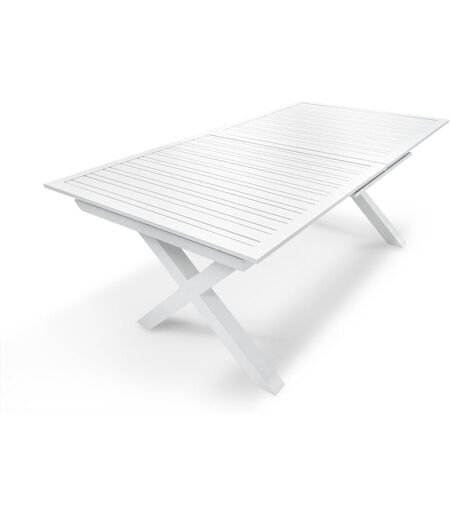 DESCRIPTION GÉNÉRALE Table de jardin en aluminium blanc avec rallonge automatique. SPÉCIFICATIONS TECHNIQUES Dimensions : L 180/240 x l 100 x H 77 cm ...
