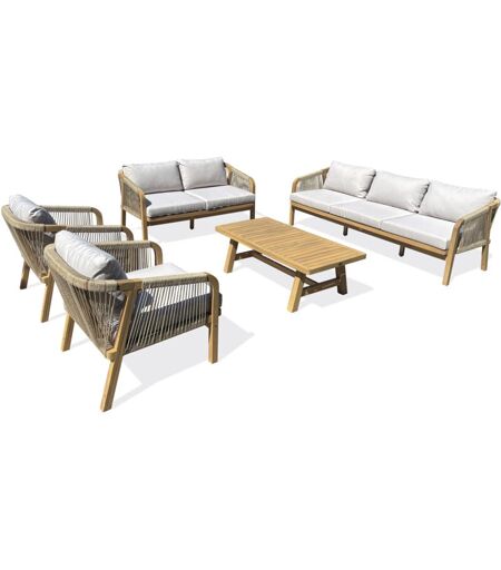 SERENA - Salon bas de jardin 7 places en bois d'acacia et corde tissée - DCB GARDEN