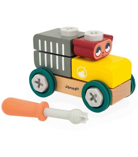 Aux petits bricoleurs en herbe ! Assemblez cette adorable voiture ours avec ses 9 pièces en bois et 16 éléments en plastique. Inclus : un tournevis et une carte modèle. Une fois assemblée, la voiture roule pour des histoires captivantes. Parfait pour stimuler l'imagination et la dextérité. Les vis cranées ajoutent jouabilité et difficulté. Jouet d'imitation en bois FSCTM pour enfants dès 2 ans. ...