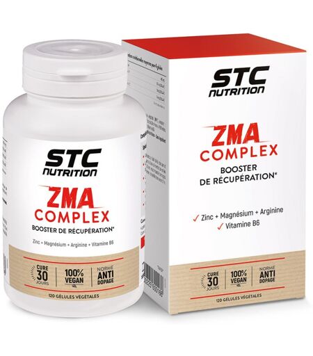 ZMA complex STC Nutrition : pour une récupération optimale ! Complément alimentaire à base de Zinc, Magnésium, L-Arginine et Vitamine B6. Objectif : Aider l'organisme à reconstituer les réserves énergétiques, éliminer les toxines, neutraliser les radicaux libres, maintenir les équilibres acido-basique et électrolytique (minéraux), et réduire la fatigue, pour une récupération optimale. Spécialement élaboré à partir de nutriments essentiels aux actions complémentaires : Le Magnésium et la Vitamine B6 aident à réduire la fatigue. La Vitamine B6 agit en association avec le Zinc sur le métabolisme des protéines et du glycogène et sur la régulation de l'activité hormonale. Le Magnésium a une action complémentaire sur la fonction musculaire et l'équilibre en électrolytes. Les formes monométhionate et citrate garantissent une biodisponibilité optimale des minéraux. PRODUIT CONFORME À LA NORME AFNOR NF EN 17444 * * A la date de fabrication du lot Conditionnement : Pilulier de 120 gélules végétales - Cure de 30 jours ...
