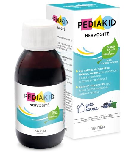Pediakid Nervosité : pour calmer en douceur les enfants agités ! Dès 4 mois Complément alimentaire à base d'extraits de Houblon, Mélisse, Fleur d'Oranger, Passiflore, Gentiane et Vitamine B6. PEDIAKID® Nervosité associe des principes actifs naturels (Passiflore, Houblon, Mélisse, fleurs d'Oranger) pour réduire l'agitation et les petits déséquilibres émotionnels des enfants tels que la mauvaise humeur et la nervosité qui peuvent être entretenus par le rythme effréné de la vie moderne. La Vitamine B6 participe au bon fonctionnement du système nerveux. Le + produit : Tous les sirops Pediakid® sont formulés à base de Sirop d'Agave et de fibres d'Acacia prébiotiques Le Sirop d'Agave est un sucre d'origine végétale : son index glycémique est plus faible que celui d'autres sucres raffinés, et il est également moins cariogène. Les Fibres d'Acacia renforcent les bénéfices du nectar d'Agave : très bien tolérées par les enfants, elles favorisent la croissance des bonnes bactéries de l'intestin. Conditionnement : Sirop en flacon de 125ml - Goût : Aromatisé au concentré naturel de Cassis. ...