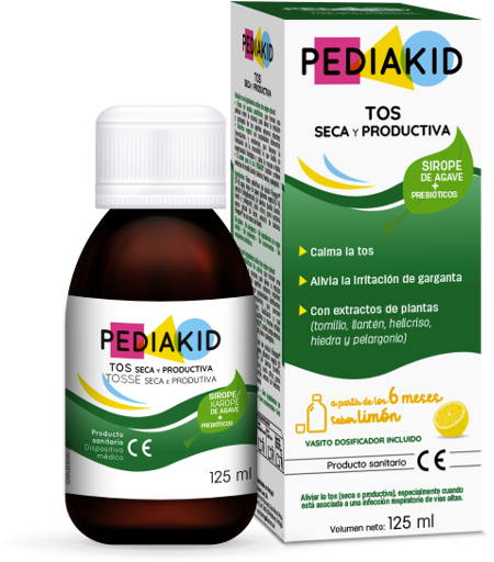 Dispositif médical qui aide à soulager la toux (sèche et grasse). Adapté aux enfants dès 6 mois, PEDIAKID® Toux Sèche & Grasse est une formule exclusive destinée à soulager la toux et calmer l'irritation de la gorge. Les fibres d'acacia forment un film sur la muqueuse pour en soulager l'irritation et la protéger des agents extérieurs irritants. La glycérine végétale, grâce à ses propriétés lubrifiantes, humectantes et émollientes, favorise l'hydratation du mucus facilitant ainsi son expectoration physiologique, tout en apaisant la muqueuse irritée. Le sirop PEDIAKID® Toux Sèche & Grasse contient également des extraits de plantes (Thym, Plantain, Lierre, Hélichryse et Pélargonium). Ce dispositif Médical est un produit de santé réglementé qui porte, au titre de cette réglementation, le marquage CE. Lire attentivement les instructions figurant sur l'étiquetage. Délicieusement aromatisé au citron (arôme naturel). Flacon de 125 ml sous étui, avec bouchon doseur inclus. ...