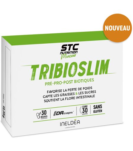 TRIBIOSLIM® STC Minceur : Innovation : Pré-Pro-Postbiotiques La santé intestinale est au cœur de votre bien-être général. TRIBIOSLIM® est une solution innovante, formulée pour rééquilibrer et renforcer votre microbiote intestinale tout en favorisant la perte de poids grâce à une combinaison unique de prébiotiques, probiotiques, et postbiotiques. Les modes de vie modernes, riches en aliments transformés et pauvres en fibres, ainsi que le stress ou l'utilisation de médicaments (comme les antibiotiques), peuvent perturber l'équilibre de votre microbiote. TRIBIOSLIM® agit pour restaurer cet équilibre et apporte un soutien global à la gestion du poids. TRIBIOSLIM® nourrit les bonnes bactéries de l'intestin en contribuant à l'équilibre de la flore intestinale. Avec une formulation élaborée et adaptée à un usage quotidien, TRIBIOSLIM® est l'allié parfait pour optimiser votre bien-être et retrouver votre ligne grâce à une action à 360°C sur la flore intestinale. 1. Prébiotiques : Ces fibres non digestibles nourrissent les bactéries bénéfiques de l'intestin, en stimulant leur croissance et leur activité. Les prébiotiques préparent le terrain pour un microbiote en bonne santé. 2. Probiotiques : Les probiotiques sont des micro-organismes vivants, souvent appelés "bonnes bactéries". Les probiotiques contribuent à l'équilibre de la flore intestinale. Une flore intestinale équilibrée et en bonne santé joue un rôle central sur la perte de poids. 3. Postbiotiques : Produits finaux du métabolisme des probiotiques; les postbiotiques sont issus de la fermentation des fibres alimentaires par le microbiote intestinal. Pourquoi choisir TRIBIOSLIM® ? TRIBIOSLIM® est une combinaison unique et innovante de pré, pro et postbiotiques qui agit en triple action pour favoriser la perte de poids en soutenant la flore intestinale dans son intégralité Prébiotiques : Le Nopal contient des fibres prébiotiques et contribue à absorber les graisses et les sucres présents dans l'alimentation ; contribuant ainsi à réduire l'apport calorique et à soutenir l'amincissement. Les fibres d'acacia complètent la formule pour un apport en fibres optimal. Probiotiques : La formule TRIBIOSLIM® contient 12 milliards d'UFC de Lactobacillus gasseri; le probiotique le plus documenté scientifiquement sur la perte de poids. Il est idéal pour l'équilibre de la flore intestinale. Postbiotiques : Le Butyrate de sodium, vient compléter la formule en agissant notamment sur le colon. Le Butyrate de sodium est la source principale d'énergie pour les cellules du colon, et est également utilisé par le foie, organe majeur du métabolisme des glucides et les lipides. Il est réputé pour ses propriétés anti-inflammatoires, ses effets positifs sur le contrôle du poids et a un effet protecteur sur la résistance à l'insuline1. (1) Van Deuren T, Blaak EE, Canfora EE. Butyrate to combat obesity and obesity-associated metabolic disorders: Current status and future implications for therapeutic use. Obes Rev. 2022... ...