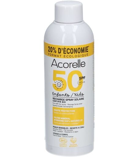 Acorelle Nature Sun Spray Solaire IP50 Enfants Peaux Sensibles Bio Flacon-Pompe recharge Liquide 150 ml