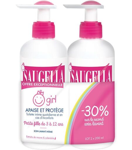 Saugella - Girl Soin lavant intime féminin à base d’extraits de Malva sylvestris et Calendula officinalis partir 3 ans Flacons Lot 2x200 ml Crème 400