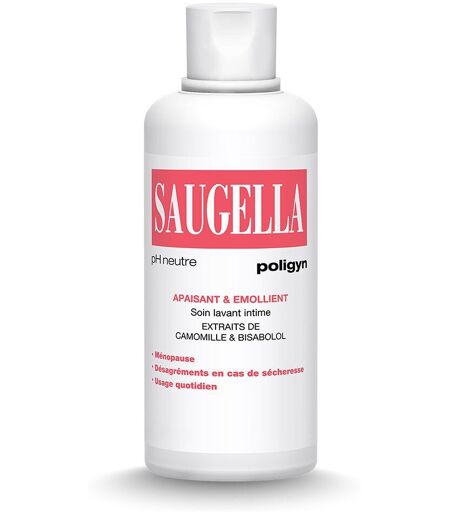 Passez le cap de la ménopause en douceur. Saugella Poligyn, soin lavant intime, est l’allié des femmes ménopausées. Il permet d’apaiser la zone intime pendant et après la ménopause, une période remplie de challenges et de beauté mais qui nécessite aussi beaucoup de patience et de douceur.Saugella Poligyn soin lavant intime répond aux besoins des femmes ménopausées et post-ménopausées. Enrichi en extrait de camomille et en bisabolol, connus pour leurs propriétés apaisantes, Saugella Poligyn agit en douceur pour apaiser les inconforts, tels que les démangeaisons liés à la sécheresse vulvovaginale qui survient souvent avec la ménopause*. De plus, l'acide lactique aide à maintenir et à protéger le pH, ce qui garantit que l’équilibre intime ne soit pas perturbé pendant les changements sur le corps du cycle liés à la ménopause.Le soin lavant intime Saugella Poligyn permet d’apaiser pendant et après la ménopause, et sa formule testée gynécologiquement** respecte la peau de la zone intime. Pour un esprit tranquille et un confort intime quotidien, adoptez Saugella Poligyn dans votre routine, en l'utilisant uniquement sur les zones externes de votre zone intime, une à deux fois par jour.*Monti M. Extrait de camomille dans un nettoyant (Saugella Poligyn) pour l'hygiène en ménopause. Glob J Microbiol Res 2016:4(1):162-166**Leo VD, Benvenuti C. Activité pharmacologique, microbiologique et clinique des nettoyants intimes féminins à base de principes actifs extraits de plantes (ligne Saugella). J Women's Health Care 2015; 4: 244ApplicationUtiliser comme un soin lavant liquide 1 ou 2 fois par jour. Ne convient pas aux enfants de moins de 6ans. Pour un usage externe uniquement. Conserver le flacon fermé et dans un endroit frais. IngrédientsAqua, Magnesium Laureth Sulfate, Cocamidopropyl Betaine, Chamomilla Recutita Flower Extract, Bisabolol, Lactic Acid, Phenoxyethanol, PEG-4 Rapeseedamide, PEG-120 Methyl Glucose Dioleate, Propylene Glycol, Potassium Sorbate, Sodium Cocoamphoacetate, Sodium Citrate, Ethylhexyglycerin, Parfum, Hydroxyacetophenone, Sodium Benzoate, Sodium Hydroxide, Disodium EDTA, Thymus Vulgaris Flower/Leaf Extract, Citric Acid, Sodium Metabisulfite, CI 19140, CI42051, Hexyl Cinnamal, Linalool. ...