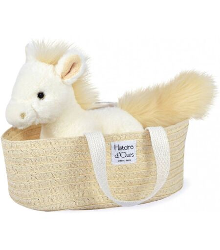 Un joli cheval écru, souple et doux en position allongée présenté dans un panier de transport naturel. Un bel ensemble que chacun appréciera pour jouer, cajoler ou décorer la chambre. Un cadeau idéal dès la naissance. Lavage à 30°, séchage naturel ou mécanique à basse température. ...