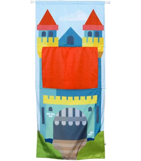 Imagibul création Oxybul : Avec Imagibul, l'imagination de votre enfant n'a pas de limites ! Nos jouets au design réaliste permettent à votre enfant de s'inventer librement des histoires. Mesdames et messieurs, le spectacle va commencer ! Ce théâtre de porte réversible est très astucieux. Équipé d'une barre télescopique, il s'adapte à toutes les portes de 73 à 125 cm de largeur. Il offre deux décors : un château de conte de fée et un paysage de campagne. Tous les deux sont équipés de rideaux et d'une poche dans laquelle se glissent les programmes de la pièce de théâtre. D'un côté ou de l'autre côté de ce théâtre de porte, votre enfant, seul ou à plusieurs, développe son imagination en présentant des spectacles de marionnettes qu'il invente lui-même. Quand le spectacle est terminé et que les applaudissements ont retenti, ce décor de théâtre se plie, se range et se transporte dans un sac de rangement. Jusqu'aux prochaines histoires ! 1 barre télescopique réglable de 73 à 125 cm, 1 panneau en tissu double face de 175 cm de haut avec poches de rangement, 1 sac de rangement. ...