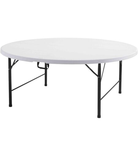 Description générale La table pliante ronde de 180 cm est conçue pour les professionnels de l'événementiel et idéale pour vos événements familiaux. Elle peut accueillir jusqu'à 10 personnes. Les pieds se rabattent et le plateau se plie en deux, permettant un rangement pratique au format valise, avec une poignée intégrée pour un transport facile. Sa structure en acier époxy et son plateau en polyéthylène haute densité (PEHD) garantissent une résistance optimale. Spécifications techniques Dimensions ouvert : Diam. 180 x H. 74 cm Dimensions fermé : L. 180 x l. 90 x ép. 8 cm Nombre de places assises : 10 personnes Matière : Structure en acier finition peinture époxy noire, plateau en PEHD Section de la structure : Ronde, Diam. 28 mm x Ép. 1,2 mm Couleur : Piétement noir, plateau blanc Charge maximum supportée : 150 kg Poids : 25 kg Usage : Professionnel intensif, intérieur et extérieur Compatibilité et accessoires Compatible avec divers accessoires d'événementiel (nappes, décorations) ...