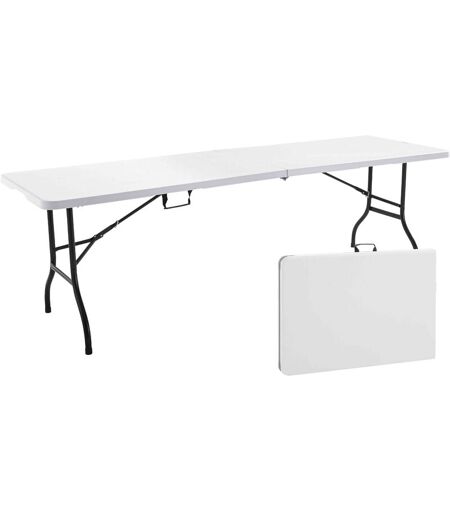 Description générale La table pliante 12 places de 244 cm en PEHD est conçue pour répondre aux besoins des salles de réception et des collectivités. Avec sa structure en acier époxy et son plateau en polyéthylène haute densité, elle peut supporter une charge maximale de 170 kg, ce qui la rend idéale pour un usage intensif, tant en intérieur qu'en extérieur. Spécifications techniques Dimensions ouverte : L.244 x l.76 x H.74 cm Dimensions fermée : L.122 x l.76 x ép.8 cm Nombre de places assises : 12 personnes Matière : Acier avec finition peinture époxy noire et plateau en PEHD Section de la structure : Ronde, diamètre 28 mm, épaisseur 1,2 mm Couleur : Piétement noir et plateau blanc Poids : 16,8 kg Compatibilité et accessoires Cette table est compatible avec divers événements et peut servir comme table d'appoint pour les particuliers. Installation Les pieds de la table se replient facilement sous le plateau, permettant un rangement compact et un transport pratique grâce à son format ...