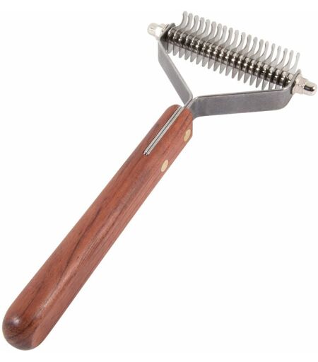 Le Coat Prince est un outil 3 en 1 qui vous permettra de démêler, supprimer les nœuds ou retirer le sous poils épais.Grâce à sa poignée ergonomique en bois et ses lames courbées en acier inoxydable, le travail de toilettage vous est facilité.Coat Prince large spécial grand chien : 20 dents. Démêloir Coat Prince grand chien IdealDog large 20 dents. Le modèle large 20 dents est particulièrement adapté à la préparation du poil et du débourrage Poignée ergonomique en bois Lames courbées en acier inoxydable arrondies aux extrémités pour plus de sécurité. Le côté tranchant des lames se trouve à l'intérieur des crochets des lames, Positionnement des lames étudié pour rendre le travail plus facile et sans douleur pour l'animal et la personne qui le toilette, Parfaitement adapté à l'utilisation intensive Il permet d'enlever le poil mort proprement et efficacement , et il élimine le sous poil rapidement et facilement . Il laisse ainsi un pelage brillant et sain . Parfait en période de mue, il ...