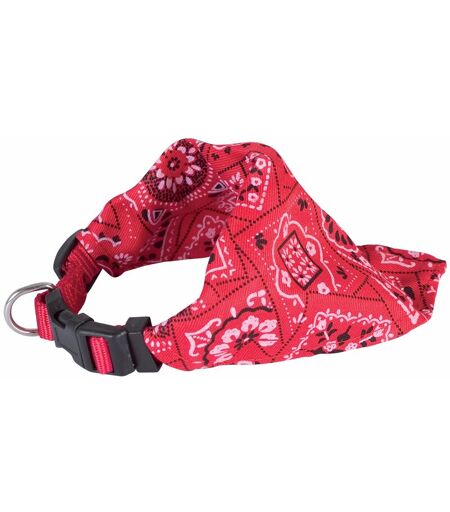 Indémodable et intemporel, le collier bandana apportera un côté folk hippie à votre chien.Ce collier en tissu est réglable et convient parfaitement à toutes les races de chiens.Disponibles en 2 couleurs et 4 tailles. Collier Doogy Fashion réglable pour chien avec motifs bandanas Fermeture et boucle de réglages en plastique Attache D pour passage de la laisse en méta chromé 2 couleurs disponibles : Rouge et Bleu Ensemble possible avec les laisses de la gamme Essentiel Doogy Tailles : T1 : 22 à 37cm x 10mm (Chiot, Chihuahua, Yorkshire...) T2 : 30 à 48cm x 15mm(Jack Russel, Cavalier King Charles, Bichon frisé...) T3 : 41 à 67cm x 20mm ( Carlin, Shih Tzu, Westie, Cocker Américain...) T4 : 45 à 73cm x 25mm ( Bouledogue Français, Labrador, Epagneul Breton...) Les exemples de chien sont donnés à titre indicatif. Nous vous conseillons de prendre les mesures directement sur votre animal. Afin de trouver la taille idéale de collier, nous vous conseillons de mesurer le tour de cou de votre chien ...