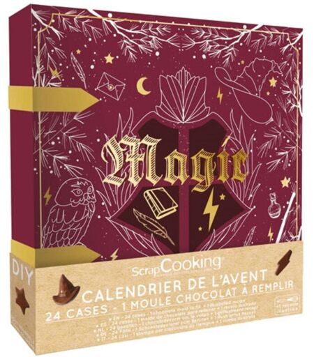 Calendrier de l'Avent - Sorcier - Original : créez votre propre calendrier pour compter les jours avant Noël ! - Magique ! - Un kit pour réaliser votre calendrier de l'Avent ensorcelé ! - Avec un moule à chocolats et une recette, vos petits gourmands auront tous les éléments pour créer des superbes chocolats en forme d'éclair, de chapeau, de chaudron, ou encore de grimoire et de chouette ! - La meilleure façon de décompter les jours avant de rencontrer le Père Noël ! - Format pratique : avec son ouverture façon livre, ses 24 cases prédécoupées et son moule réutilisable, ce calendrier de l'Avent ravira aussi bien les grands que les petits gourmands ! - Moule en plastique PET - Réutilisable et lavable à l'eau chaude savonneuse pour créer encore et encore de multiples chocolats ! ...