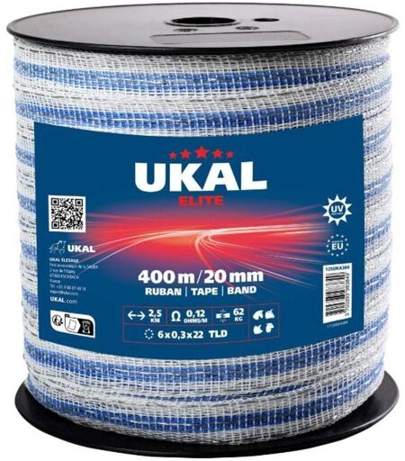 Ukal - Ruban 20mm blanc et bleu elite 400m