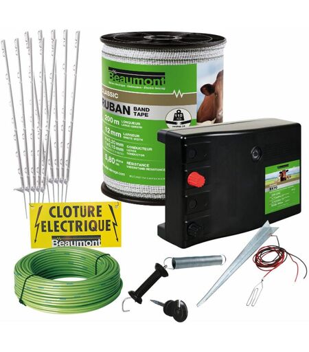Description générale Ce kit complet de clôture électrique est spécialement conçu pour les grands chiens ou les chiens à poils longs et épais. Il permet d'installer facilement une clôture électrifiée pour protéger votre animal et vos plantations. Grâce à un puissant poste CLASSIC S170 de 1,4 J, les risques de fugue sont minimisés, vous permettant de vaquer à vos occupations en toute sérénité. Spécifications techniques Poste de clôture sur secteur S170, 1,4 J Ruban blanc et vert de 12 mm, longueur de 200 m 10 piquets en plastique de 90 cm 1 piquet de terre Plaque de signalisation "Clôture électrique" 10 m de câble de tension 5 isolateurs 1 poignée avec ressort de 5 m pour créer une porte Compatibilité et accessoires Ce kit est compatible avec d'autres systèmes de clôture électrique et peut être complété par des accessoires supplémentaires tels que des isolateurs et des piquets supplémentaires. Installation L'installation de la clôture est simple et rapide. Suivez les instructions ...