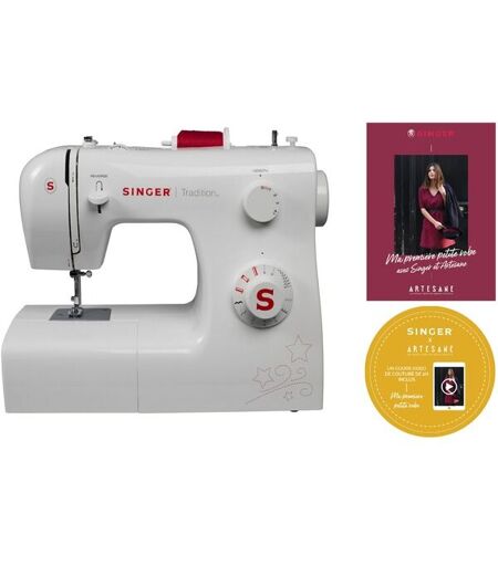 Obtenez le matériel qu'il vous faut pour débuter la couture ! Profitez de la machine à coudre Artesane 160 ainsi que d'un cours de couture interactif inclus. La machine à coudre Artesane 160 est design et fonctionnelle. Idéale pour les débutants et débutantes qui souhaitent laisser parler leur créativité Simple d'utilisation : Elle est équipée de 10 programmes et de 18 points utilitaires et décoratifs, indispensables à tous les travaux de couture. Facile, la sélection des points se fait directement. Le réglage de la tension du fil supérieur est manuel. Pratique: Elle dispose d'une fonction marche arrière et d'un enfilage simplifié, ainsi qu'une boutonnière automatique en 4 temps. Bras libre : Il permet de coudre des pièces tubulaires telles que le bas des pantalons, les manches... Eclairage du plan à coudre : L'éclairage du plan à coudre vous assure un confort visuel pour coudre vos pièces sans difficulté. Porte-canette métallique : Elle est fiable et robuste grâce à son porte-canette métallique. Accessoires : Pour coudre de façon efficace, la machine à coudre est livrée avec : - 1 pied multi-usage, - 1 pied pour fermeture-éclair, - 1 pied pour boutonnière, - 1 pied pour pose de bouton, - 1 tournevis L, - 1 brosse / découseur, - 1 feutre pour bobine, - 1 étui à aiguilles, - 1 guide couture / matelassage, - 1 canette Un cours de couture inclus : Pour les grands débutants en couture, la vidéo interactive "Mes premiers pas avec ma machine à coudre" est disponible à vie pour réaliser sa première tenue. ...