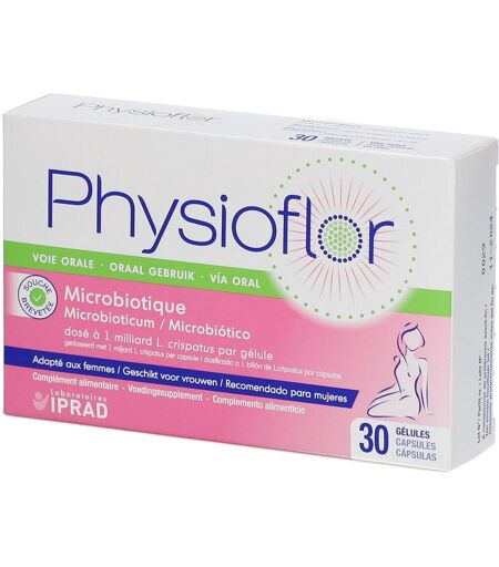 Complément alimentaire à utiliser dans le cadre d’une alimentation variée, équilibrée et d’un mode de vie sain. PHYSIOFLOR® apporte par voie orale une souche microbiotique brevetée de Lactobacillus crispatus, espèce naturellement présente dans une flore vaginale. Conditionné en gélules gastro-résistantes. Composition: Agent de charge : Fructo-oligosaccharides, Culture lyophilisée de Lactobacillus crispatus (109 UFC/gélule à libération, souche brevetée IP174178), Antiagglomérants : Sels de magnésium d’acide gras, Agents d’enrobage (enveloppe) : Hydroxypropylméthylcellulose et Gomme Gellane. Contient du lait. Conseil d'utilisation: A avaler avec un verre d’eau, de préférence avant le repas. Peut être utilisé en complément d’un traitement par voie vaginale. Précautions d'emploi: Réservé à l’adulte. Ne pas dépasser la dose journalière recommandée. A conserver dans un endroit sec et frais, à une température inférieure à 25°C. Tenir hors de portée des enfants. Ne pas utiliser PHYSIOFLOR en cas d’hypersensibilité/allergie connue à l’un des constituants. Si vous êtes enceinte ou si vous envisagez une grossesse, vous devez consulter votre médecin avant d’utiliser PHYSIOFLOR®. PHYSIOFLOR® peut être utilisé en cas d’allaitement. Si une maladie associée à une atteinte du système immunitaire (ex : SIDA) vous a été diagnostiquée, vous ne devez ingérer des lactobacilles que sous surveillance médicale en raison du risque possible de bactériémie. Veuillez lire attentivement la notice avant utilisation. Poids net: 30 gélules Fabricant: Laboratoires Iprad 174 Quai de Jemmapes 75010 Paris ...