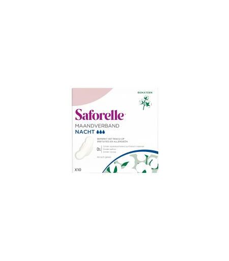 Saforelle Serviettes Hygiéniques Nuit Avec Ailettes en Coton Bio 10 Serviettes Hygiéniques - Boîte 10 serviettes hygiéniques