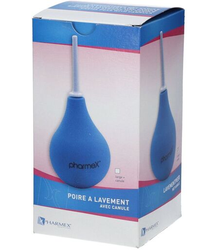 Poires avec canule pour lavement rectal XL 483 mlCaractéristiquesMatériau: poire: PVC souple (polychlorure de vinyle) – canule: polyéthylène Les pièces ne sont pas disponibles séparément Sans latex Indication: constipation, stimulation de l’activité intestinale, vidange contrôlée de l’intestin en cas d’incontinence, vidange controlée de l’intestin pour un examen ou une intervention chirurgicale, administration de médicaments La température du liquide doit avoir plus ou moins la température corporelle Le patient doit prendre une position confortable (ex. position de Sim, sur le côté gauche et la jambe droite pliée) On peut lubrifier la partie supérieure pour faciliter l’introductionConditionnement Poire avec canule pour lavement rectal x 1 ...