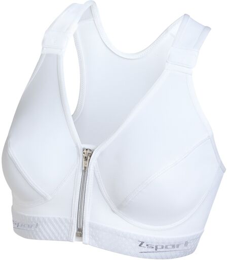 Brassière Zsport Zbra SilverZsport innove et lance Zbra Silver, son tout nouveau soutien-gorge de sport Maintien 5 pour tous les sports à intensité très forte et pour toutes les femmes à la recherche d'un maintien extrême ou ayant une forte poitrine.Chic et sobre, il est ajustable à chaque morphologie garantissant un grand confort, une excellente thermorégulation et un maintien extrême de la poitrine pour toutes les pratiques sportives.Fermeture par zip frontal pour faciliter l'enfilage avec bande protectrice en dessous pour éviter tous frottementsDos nageur pour une plus grande amplitude de mouvements permettant aussi un meilleur maintienSystème de coutures antièirritationsTextile Fresh fabrics plus avec une nouvelle fibre textile plus performante facilitant l'élimination de la transpiration et garantissant une thermorégulation encore plus efficace. ...