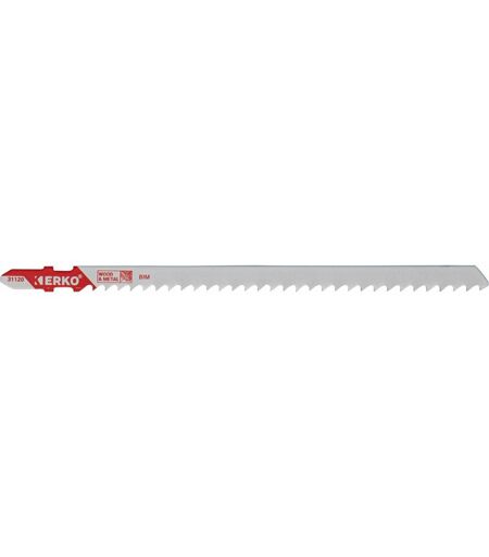 Lame sauteuse meulée avoyée en BIMETAL (Association d'un HSS Acier Super Rapide + dossier très souple et résistant). 130 mm utile, 155 mm totale, 6TPI (pas de 4 mm), série WOOD & METAL, pour couper très rapidement tous les bois, les bois très durs, les bois cloutés ou avec des vis, des cornières aciers. Spéciale chantier. TRES LONGUE. Performance et sécurité. ...