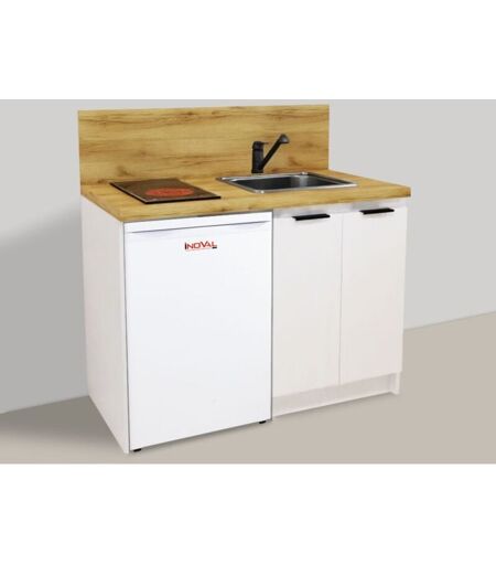 Inoval - kitchenette blanche 120cm + plaque de cuisson + refrigerateur + evier + mitigeur
