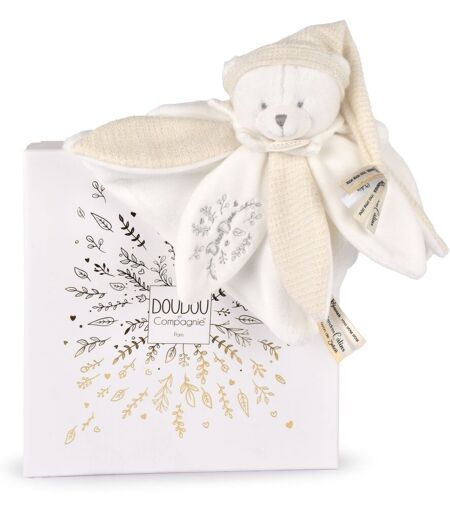 Doudou et Compagnie Doudou Plat Pétales Ours Blanc 25 Cm