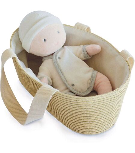 Doudou et Compagnie Poupon Avec Couffin Blanc/Gris