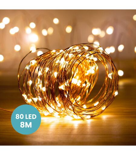 SKYLANTERN Guirlande MicroLed Cuivre 8M - Guirlande Lumineuse Led 80 Leds - Guirlande Leds pour deco chambre, déco de Noël, ambiance poétique et romantique