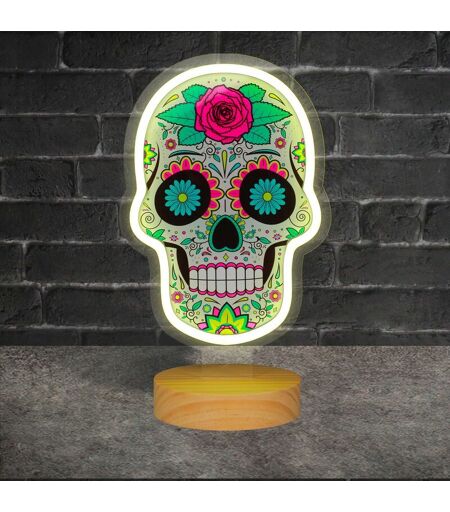 SKYLANTERN Lampe Néon Dia de Los Muertos Sur Pied en Bois 36CM - Néon Lumineux avec Support en Acrylique - Néon led Avec Interrupteur pour Décoration Thème