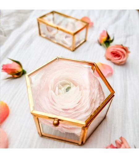 Skylantern - Boîte à Bague Mariage Hexagonale - Boite Alliance Mariage en Verre et Métal - Boîte à bijoux Or - Boîte à bague de demande en mariage,