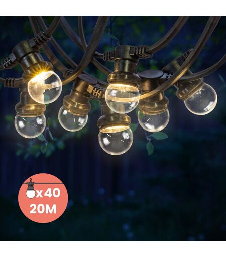 SKYLANTERN Guirlande Guinguette 20M Transparente IP65 - Guirlande Lumineuse Extérieur 40 Bulbes Dimmables - Guirlande Exterieure Etanche pour Décoration de