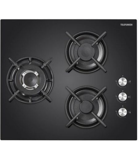 Telefunken Plaque gaz TGV3C, 3 foyers, Verre noir, Allumage une main