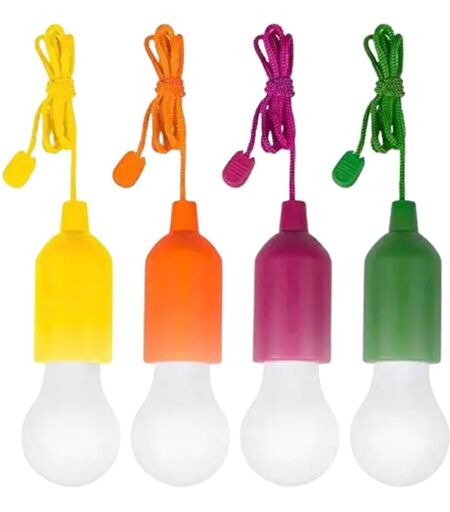 SIMPLE D'UTILISATION : Dès que vous tirez la suspension avec un interrupteur à tirette, la lumière s'allume. Éteindre est tout aussi simple !INSTALLATION RAPIDE : La suspension sans fil est à fixer au plafond avec le fil. C'est plus facile que d'attacher des chaussures !SIMPLEMENT SANS FIL : L'ampoule à piles peut être utilisée partout où il n'y a pas de connexion électrique à portée de main !OU QUE VOUS SOYEZ : Parfait pour les tentes en camping, dans les pavillons des festivals, dans les placards, au sous-sol, à l'extérieur et bien plus encore !COLIS : 4x lampes suspendues LED /Couleur : 1 x magenta, 1x verte, 1x orange, 1 x jaune // Piles requises : 3 x AAA (non incluses) par lampe4 lampes LED pendantes avec interrupteur à câbles, emmenaient les où que vous soyez : Maison, jardin, camping, atelier.Installation rapide, il vous suffit de tirer le câble pour l'allumer et de même pour l'éteindre. ...