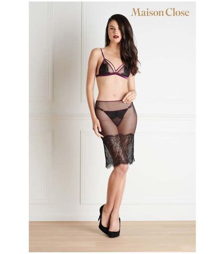 Maison Close vous présente la Jupe Coup de Foudre de sa nouvelle collection Coup de Foudre. Comment ne pas succomber au charme de la collection de lingerie aussi ardente que romantique Coup de Foudre de la marque Maison Close. Noir et violet, brisant toutes les frontières entre l'osé et l'élégant, Coup de Foudre séduit, intrigue, charme. Par son jeu audacieux de transparence, de finitions en dentelle et de tissus seconde peau, Maison Close présente une collection brûlante et romantique. Chaque collection intemporelle de Maison Close est empreinte d’amour, d’allure et de luxure. La Jupe Coup de Foudre en tulle est doté en bas d’une magnifique dentelle fine qui vous promet des instants amoureux et passionnés grâce à ses jeux de transparence à la fois osé et élégant. Votre jupe arrive au-dessus des genoux et laissera en transparence votre corps nu pour le plus grand bonheur de votre partenaire. Composition : 93% Nylon, 7% Élasthanne ...