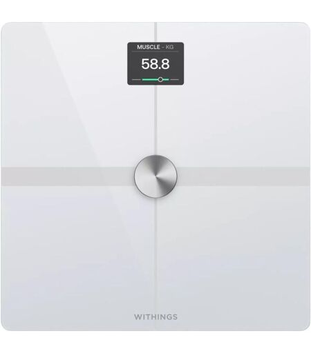 Withings Body Smart. Type: Pèse-personne électronique, Capacité de charge maximale: 200 kg, Exactitude/Précision: 50 g. Écran: LCD, Taille de l'écran: 7,11 cm (2.8"). Type de source d'alimentation: Batterie, Type de batterie: AAA, Technologie batterie: Alcaline. Standards wifi: 802.11b, 802.11g, Wi-Fi 4 (802.11n), Algorithme de sécurité soutenu: WEP, WPA, Système mobile supporté: Android 10.0, Android 11.0, Android 12.0, Android 13.0, iOS 14, iOS 15, iOS 16. Largeur: 325 mm, Profondeur: 325 mm, Hauteur: 25,6 mm ...