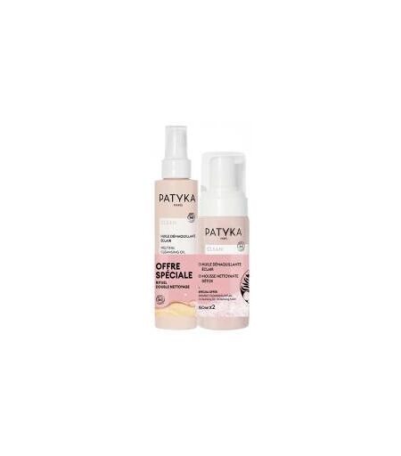 PATYKA Clean Huile Démaquillante Éclair Bio 150 ml + Mousse Nettoyante Détox Bio 150 ml Offre Spéciale - Lot 2 produits