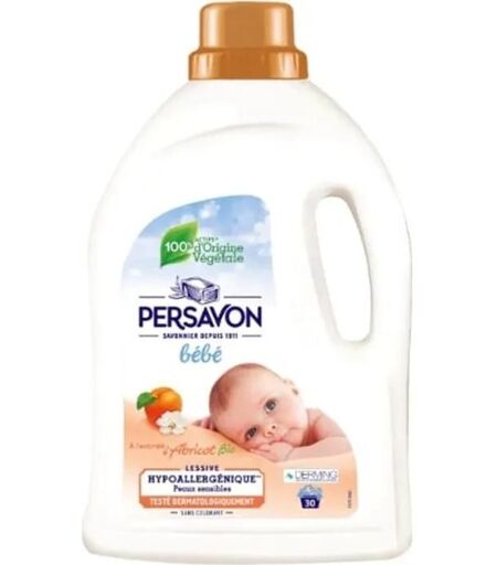 Persavon Lessive bébé hypoallergénique à l'extrait d'abricot bio 1500ml - Blanc