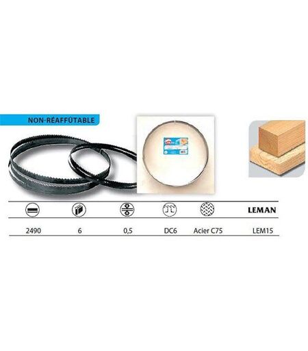 Lame de scie à ruban Caractéristiques techniques - Longueur : 2490 mm - Largeur : 6 mm - Epaisseur : 0.5 mm - Ecart dents : DC6 ...