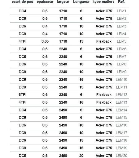 Lame de scie à ruban Caractéristiques techniques - Longueur : 1710 mm - Largeur : 6 mm - Epaisseur : 0.5 mm - Ecart dents : DC6 ...
