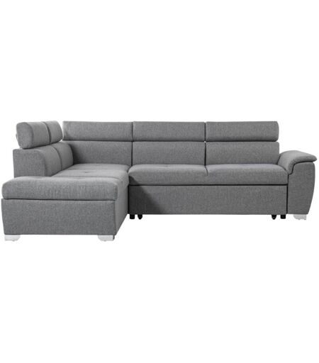 Loungitude - Canapé d'angle convertible paola 4 places avec coffre en tissu - Gris clair - Angle Gauche