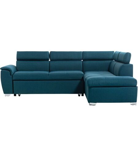 Canapé D'angle Convertible Paola 4 Places Avec Coffre En Tissu - Bleu - Angle Droit