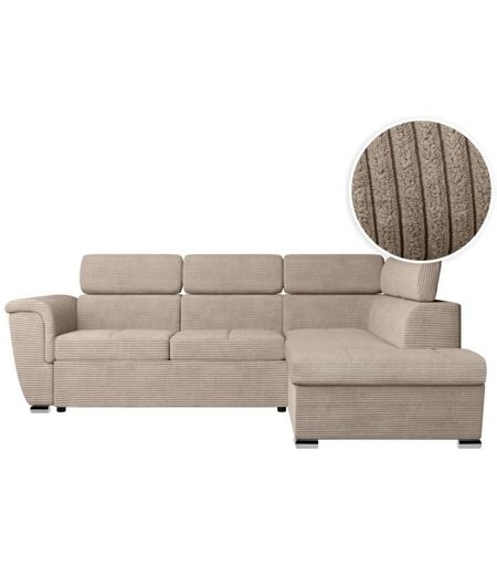 Loungitude - Canapé d'angle paola convertible avec coffre en velours côtelé - Angle droit - Taupe