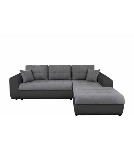 USINESTREET Canapé d'angle SUZIE Convertible en Simili et Microfibre - Angle Droit, Gris et Noir