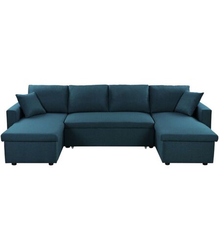 Usinestreet - Canapé d'angle Panoramique maria Convertible Avec 2 Coffres en tissu - Bleu pétrole