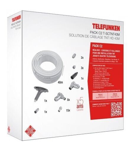 Pack de câblage tnt hd pour tv avec cable antenne 17VTAC longueur 40m et connectique 'f' C2 Telefunken T-SCTNT40M