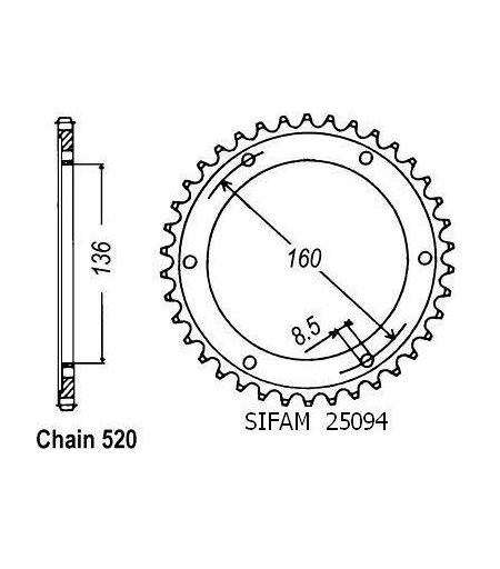 Sifam - Couronne 46 Dents 650 Pegaso Ie 01-02 Pas520/Z46