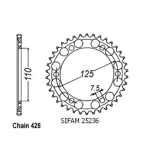 Sifam - Couronne 46 Dents Compatible Gilera 125 Cougar Pas428/Z46