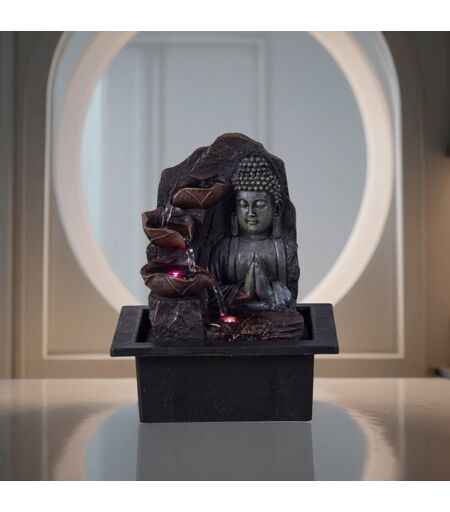 Fontaine Bouddha Et 3 Cascades De Lotus En Résine Marron - H26 Cm